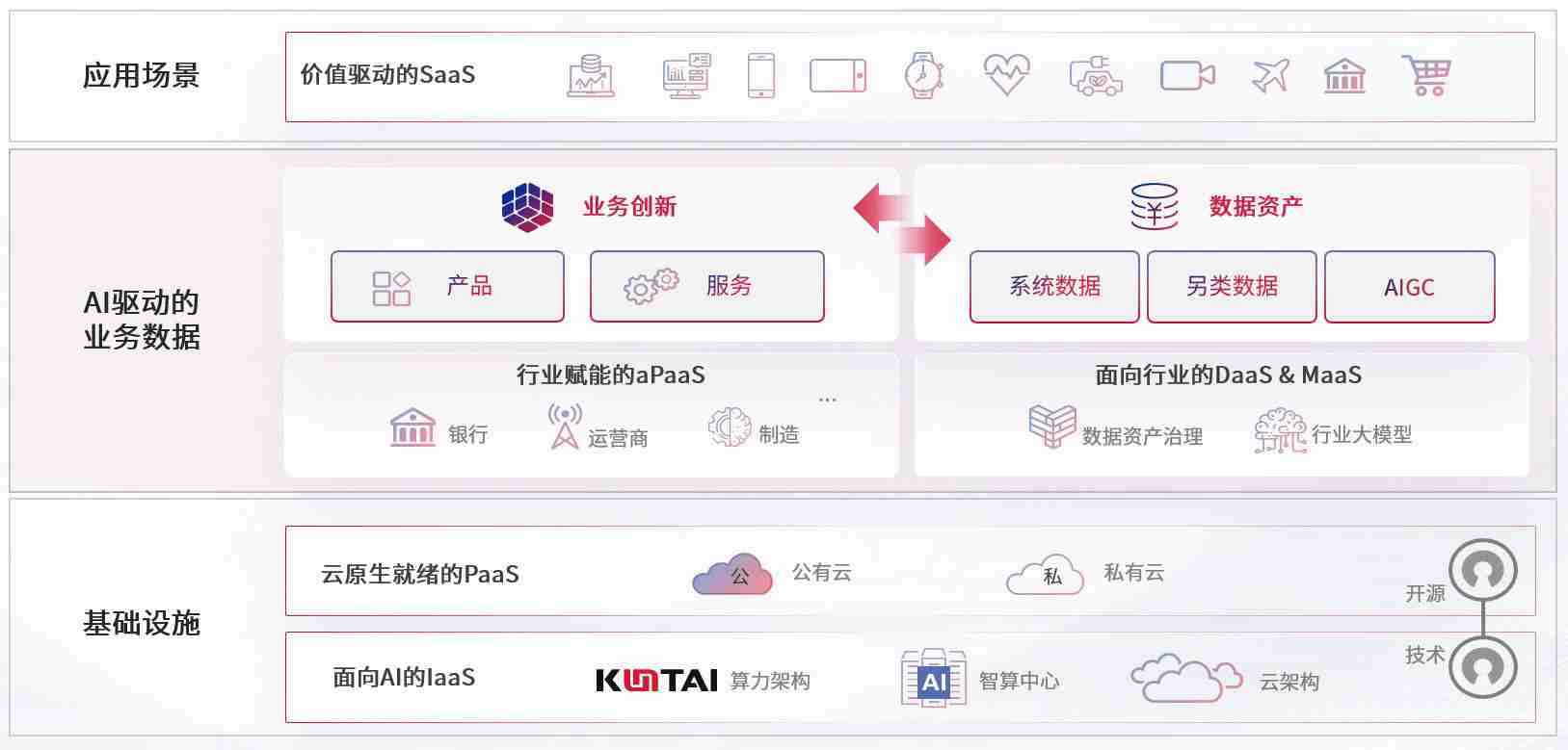 数字时代,,,围绕企业数字化转型的关键要素,,,,公海gh555000aa线路检测数码开创性的提出数云融合战略和技术体系框架,,,着力在云原生、、、、数字原生、、AI原生和信创产业上架构产品和服务能力,,,,为处在不同数字化转型阶段的快消零售、、、、汽车、、、、金融、、、医疗、、、政企、、、、教育、、运营商等行业客户提供泛在的敏捷IT能力和融合的数据驱动能力,,构建跨界融合创新的数字业务场景和新业务模式,,助力企业级客户建立面向未来的核心能力和竞争优势,,,,全面推动社会的数字化、、、智能化转型升级。。。